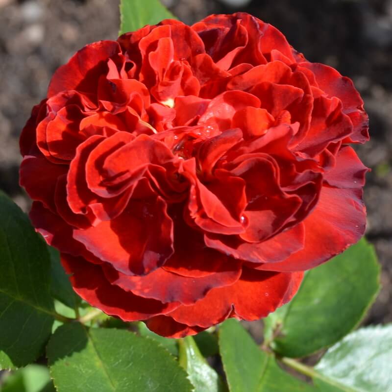 Роза выделяется своим ярким, необычным, ржаво-красным цветом. Густомахровая. Лепестки волнистые. Цветок держится долго.